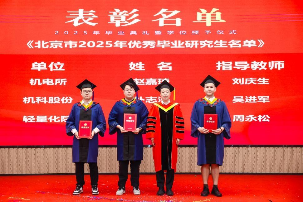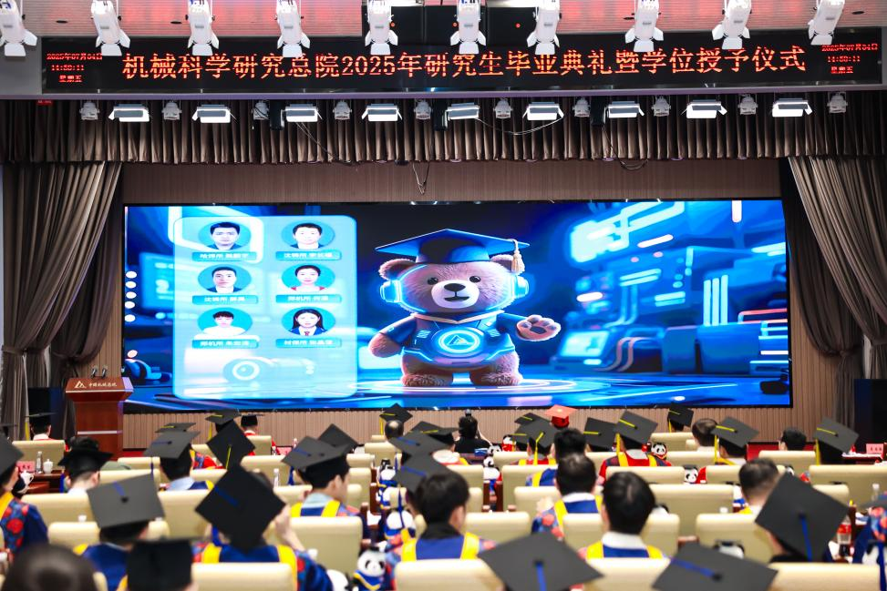 研究生院倾力打造的智慧课程虚拟AI助教“科小研同学”作为典礼第二主持人登上舞台,现场宣读了2025年北京市优秀毕业研究生、机械总院优秀毕业研究生、优秀学位论文、科技创新成果奖获得者名单,孟祥宇、李玉鑫、王宇、姜超分别向获奖同学们颁发荣誉证书。