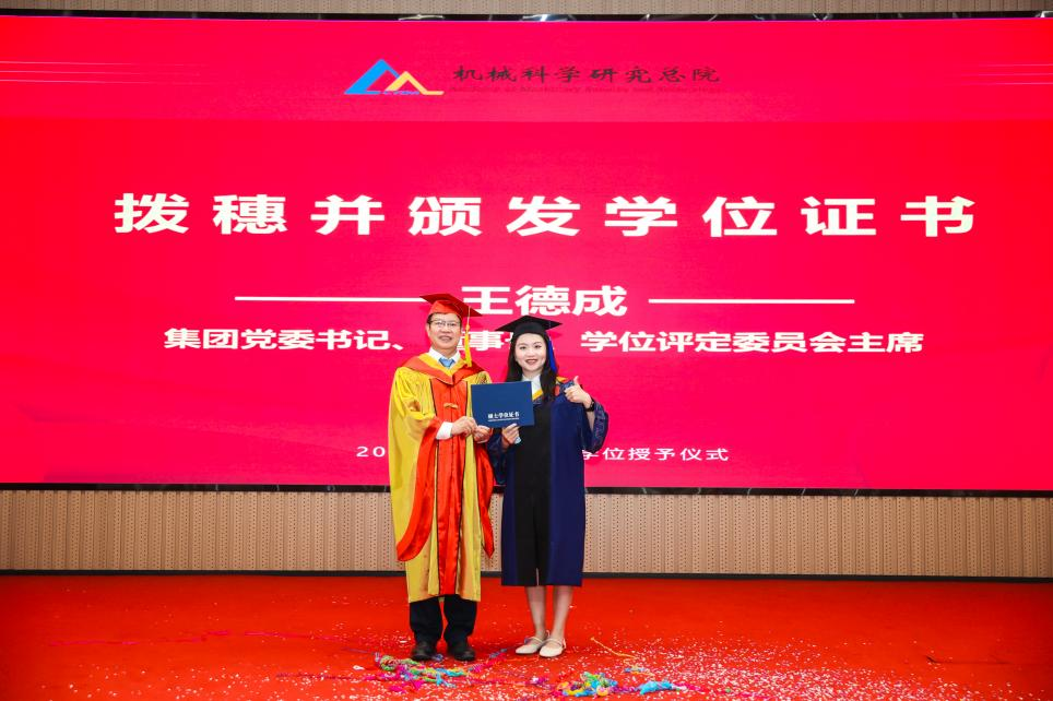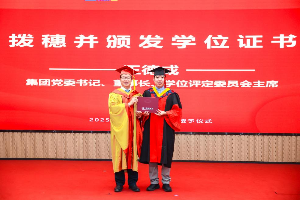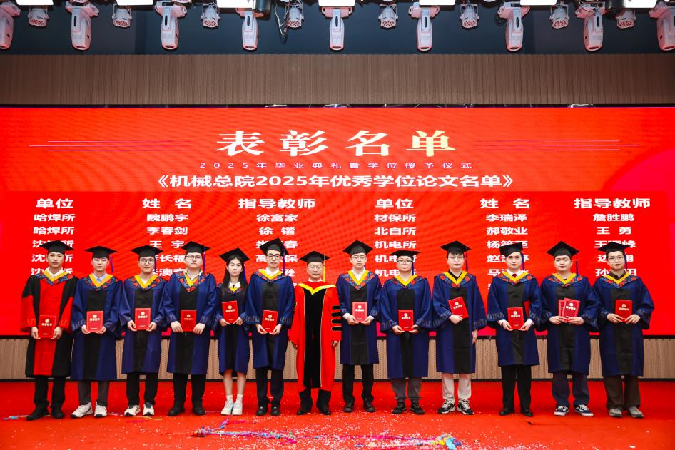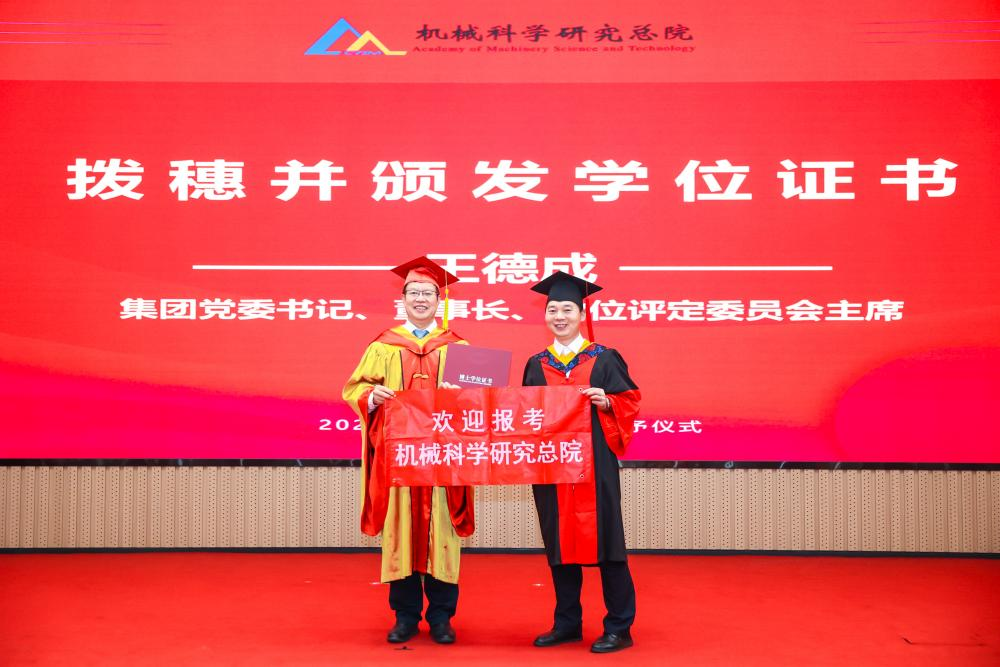 李爱国宣读了《机械科学研究总院2025届毕业生学位授予决定》,王德成为每位毕业生拨穗正冠并颁发学位证书。
