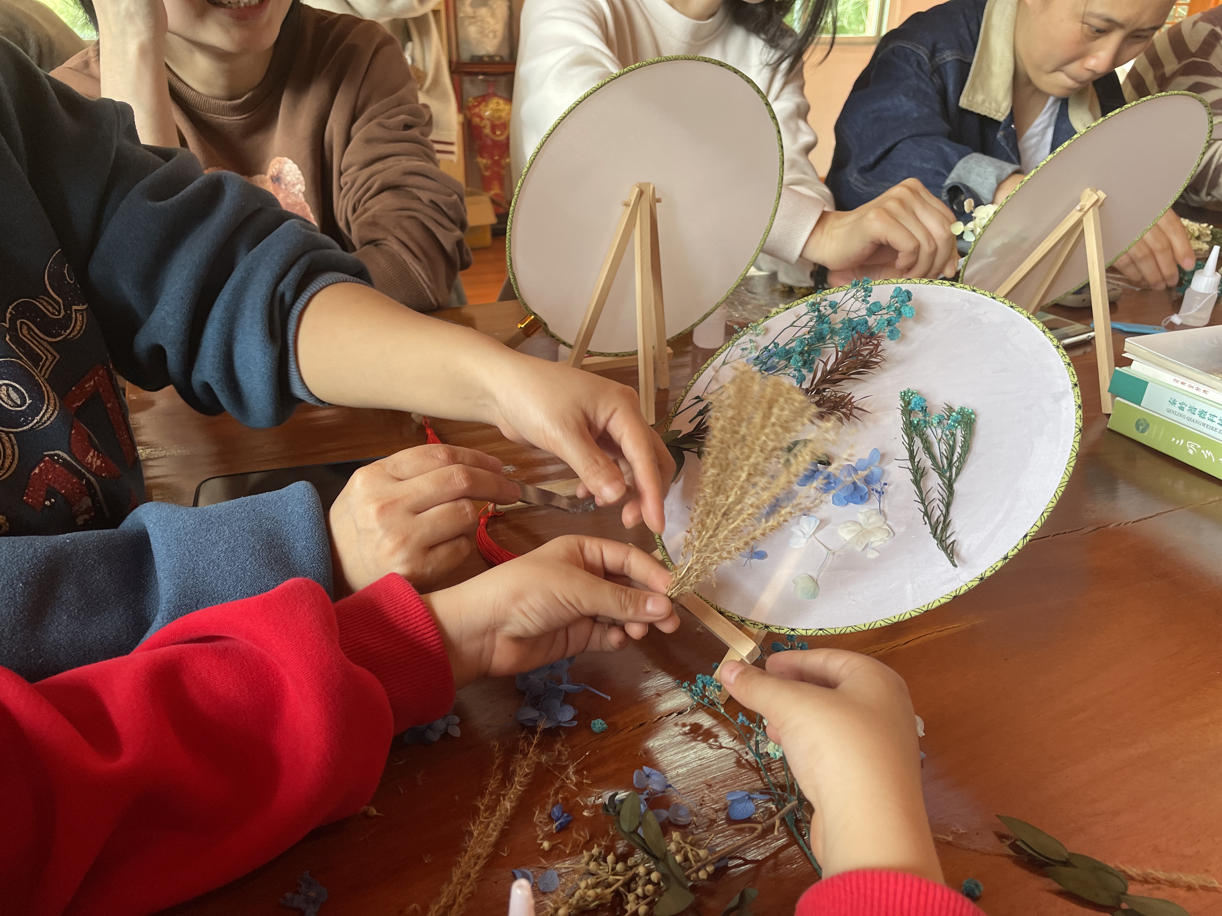 下午,手工制作活动更是激发了大家的创造力和动手能力,DIY香薰蜡烛和干花团扇为活动增添了艺术气息。