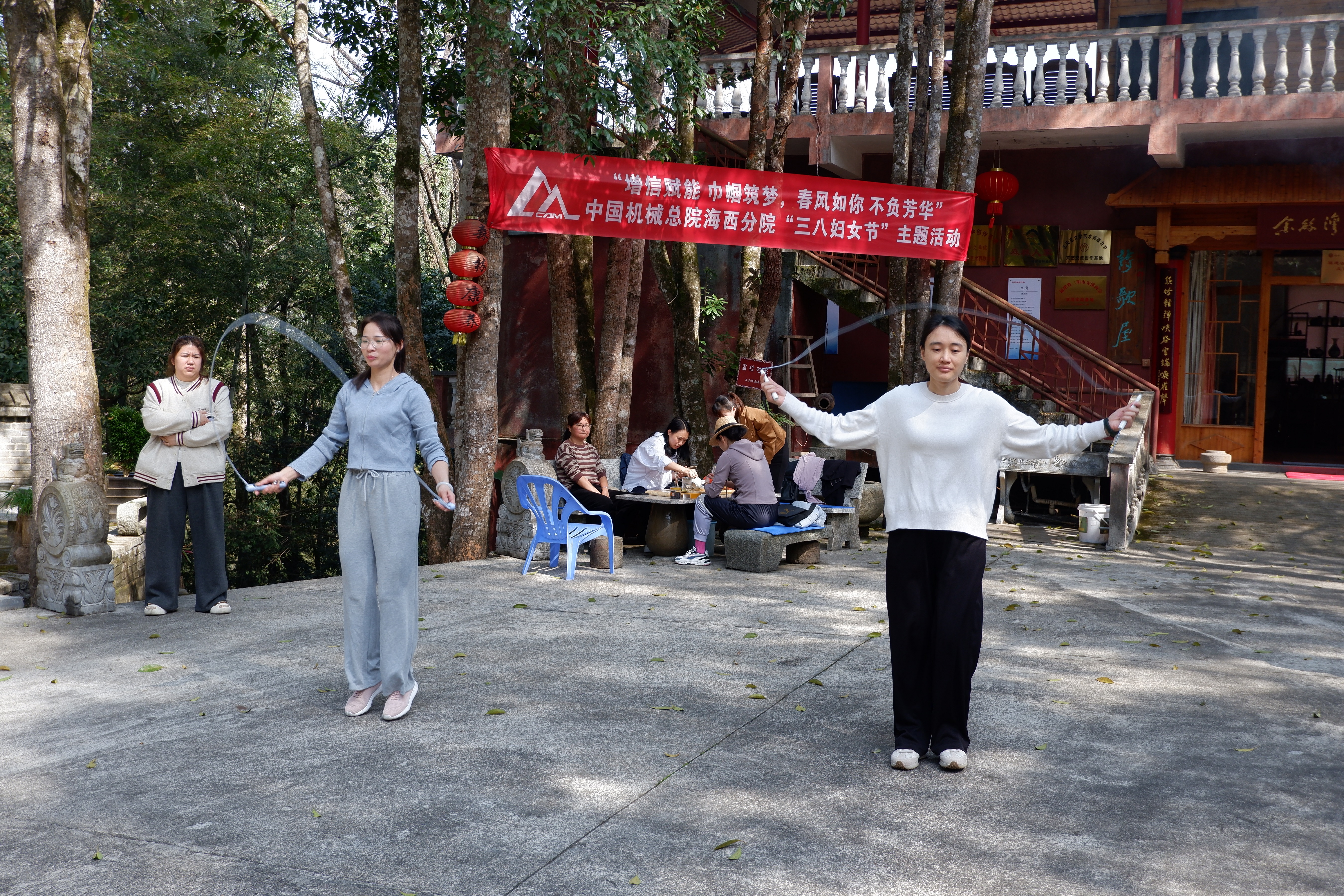 在这春日美好风光里,大家一起开展丰富多彩的体育健身活动。包括跳绳、踢毽子、呼啦圈和瑜伽健身活动。